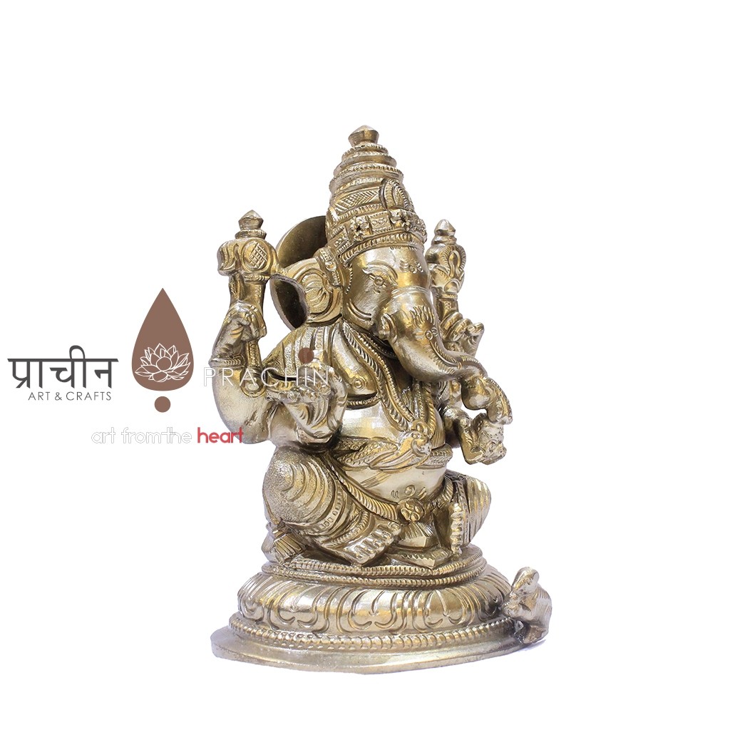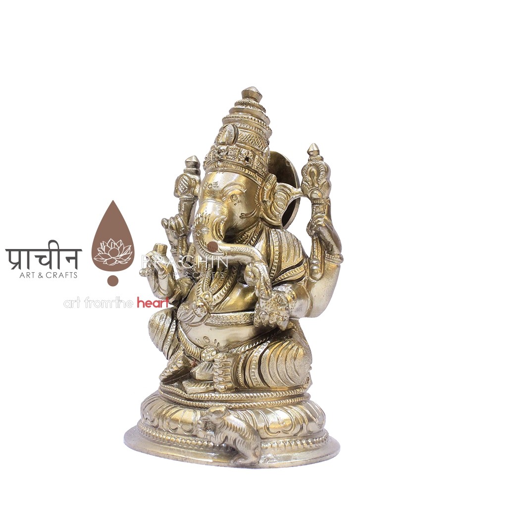 Panchaloha Ganesha Sitting Handcrafted As Per Hoysala Style.