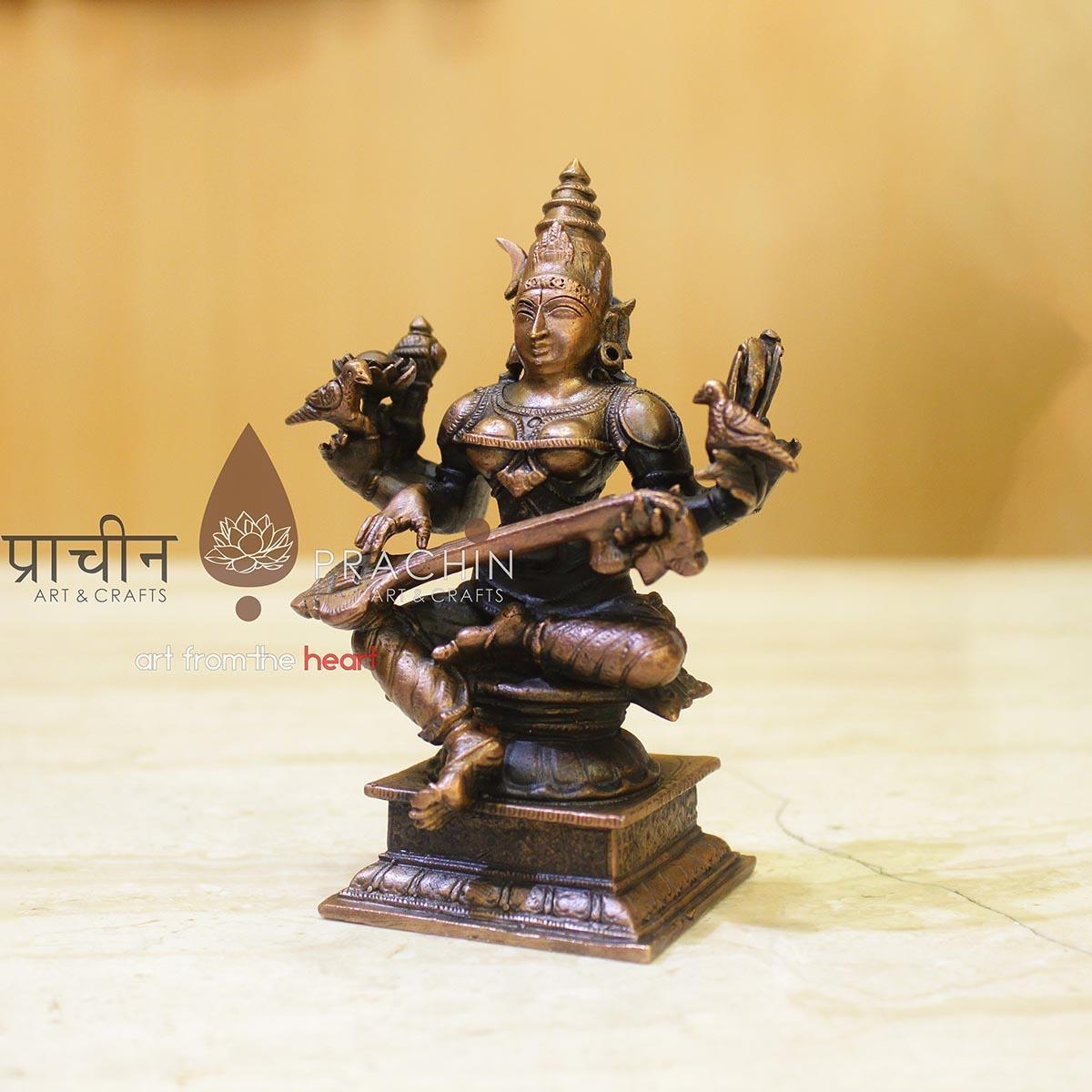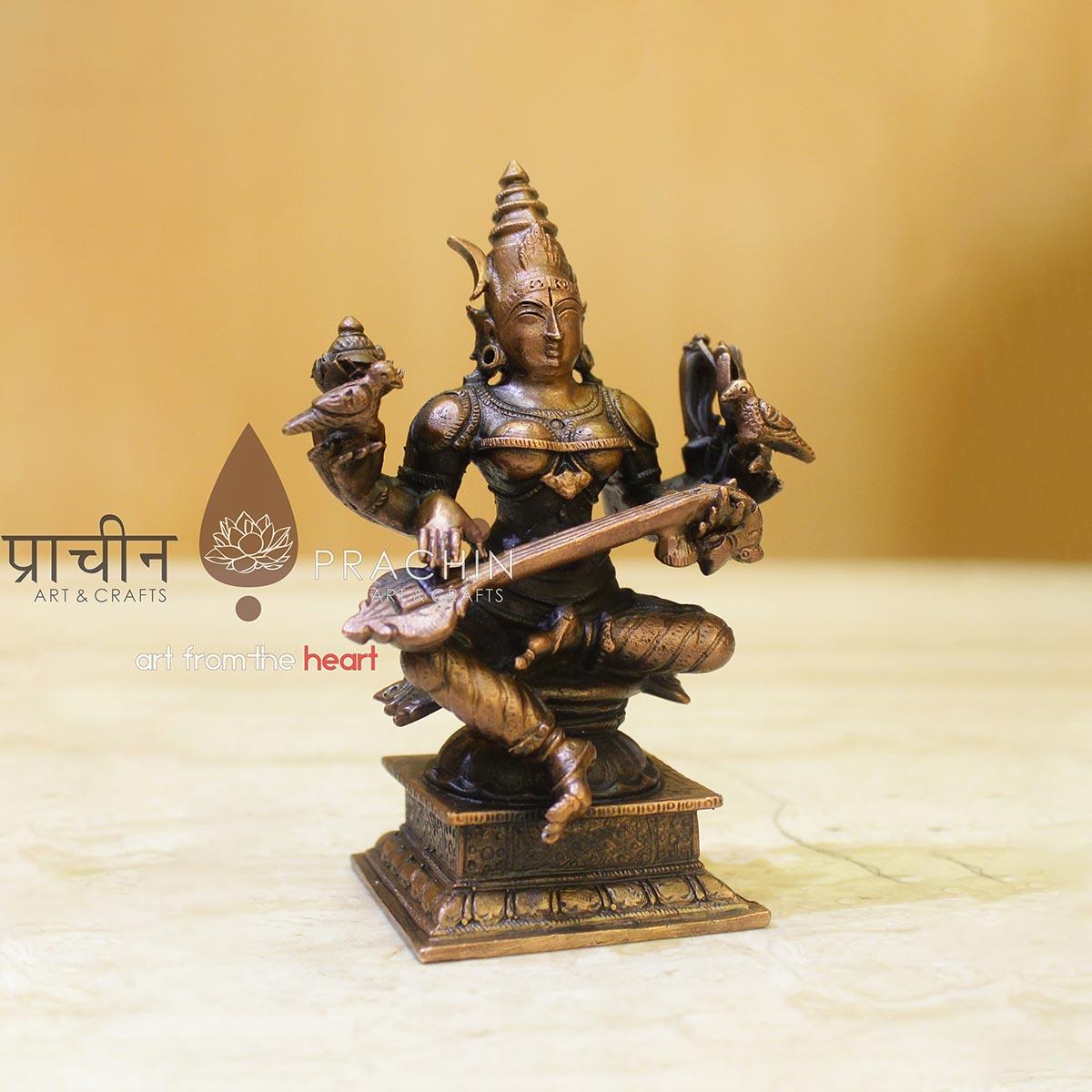 Saraswathi, goddess of knowledge and the arts, embodies the wisdom of Devi. She is the river of consciousness that enlivens creation, she is the dawn goddess whose rays dispel the darkness of ignorance. Without her there is only chaos and confusion. To realize her one must go beyond the pleasures of the senses and rejoice in the serenity of the spirit. Goddess Saraswati is also known to guide the souls of the deceased to find peace in their afterlife. ?Moksha?, as they say, is a part of the ?divine knowledge? imparted by the goddess. Her four arms represent the various aspects of human personality ? learning, mind, intellect, alertness and ego. These four arms are also known to reflect the 4 Vedas ? Rigveda, Atharvaveda, Samveda and Yajurveda.